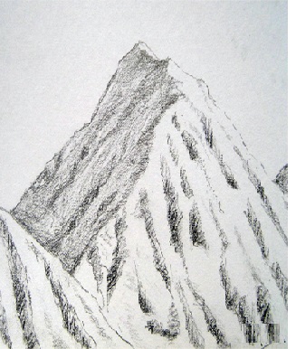 You come a series of mountains that you cannot cross. The forest trail bends away from it.The trail leads north and west.
