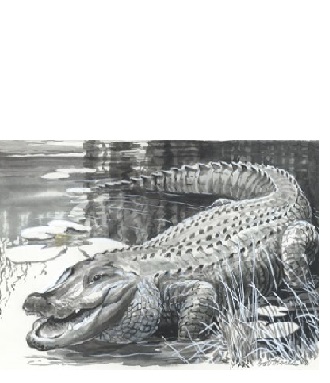 Wow! How did that crocodile get so fat? By eating folk like you!There are muddy trails going north, west, and south.