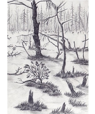 This swamp is very confusing - you fear getting lost in here.There are muddy trails going north, east, and south.