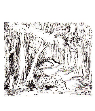 This swamp seems to go on forever - there is nothing out here.There are muddy trails going north, east, and west.